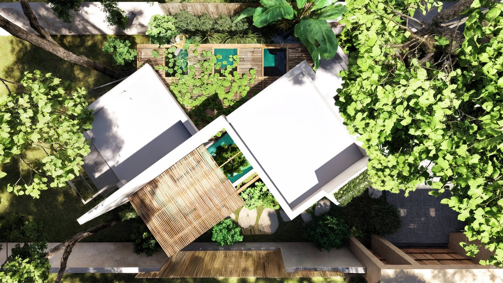 Outdoor spaces planned as part of the architecture, integrated from the beginning.